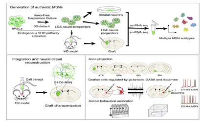 3D-cultured human medium spiny neurons functionally integrate and rescue motor deficits in Huntington's disease mice